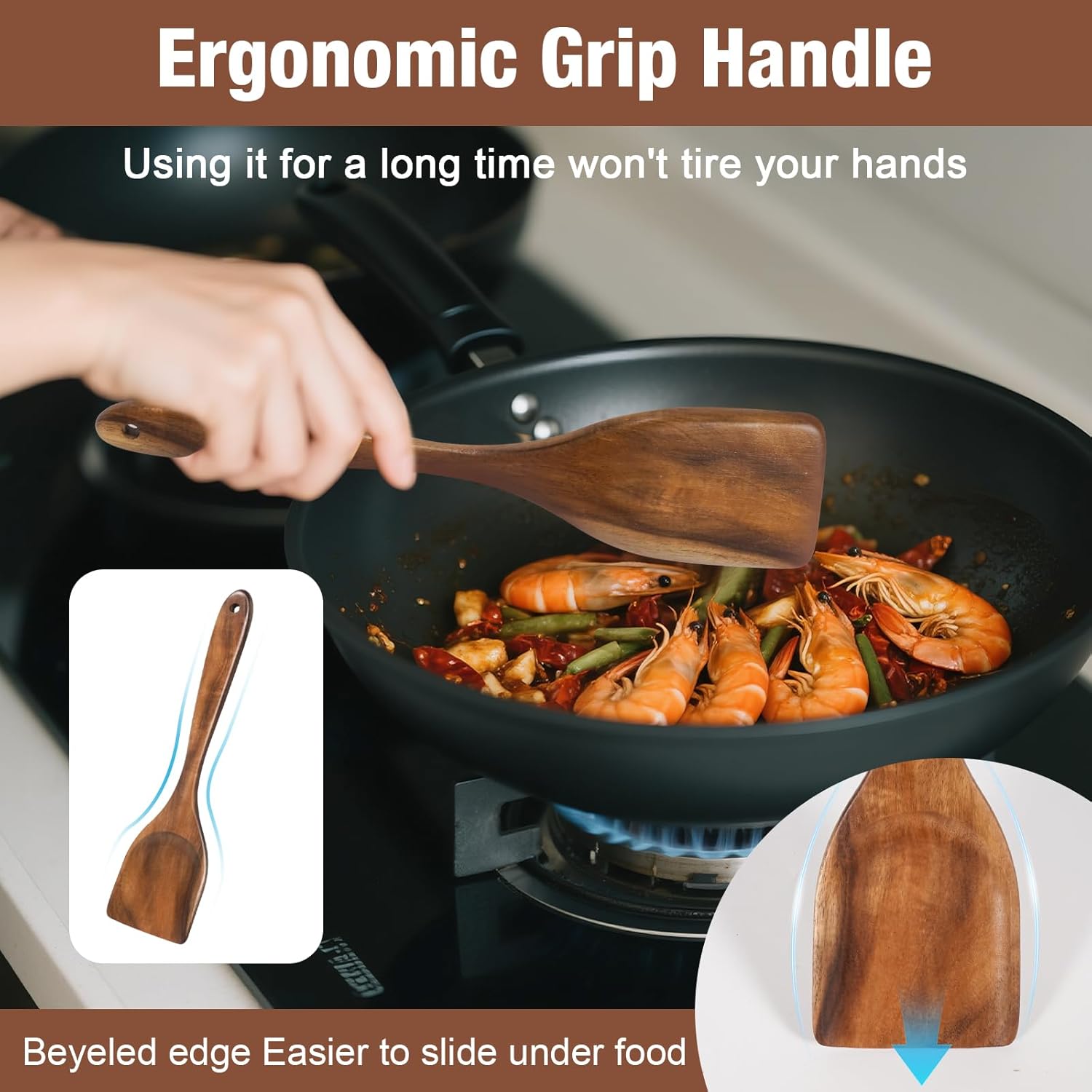 - Hard & Safe for Non-Stick Cookware – Our wood cooking utensils set is made from ultra-dense , naturally resistant to cracking and splintering. The smooth, close-grained surface ensures no scratches on delicate non-stick pans, while its sturdy build withstands daily use.