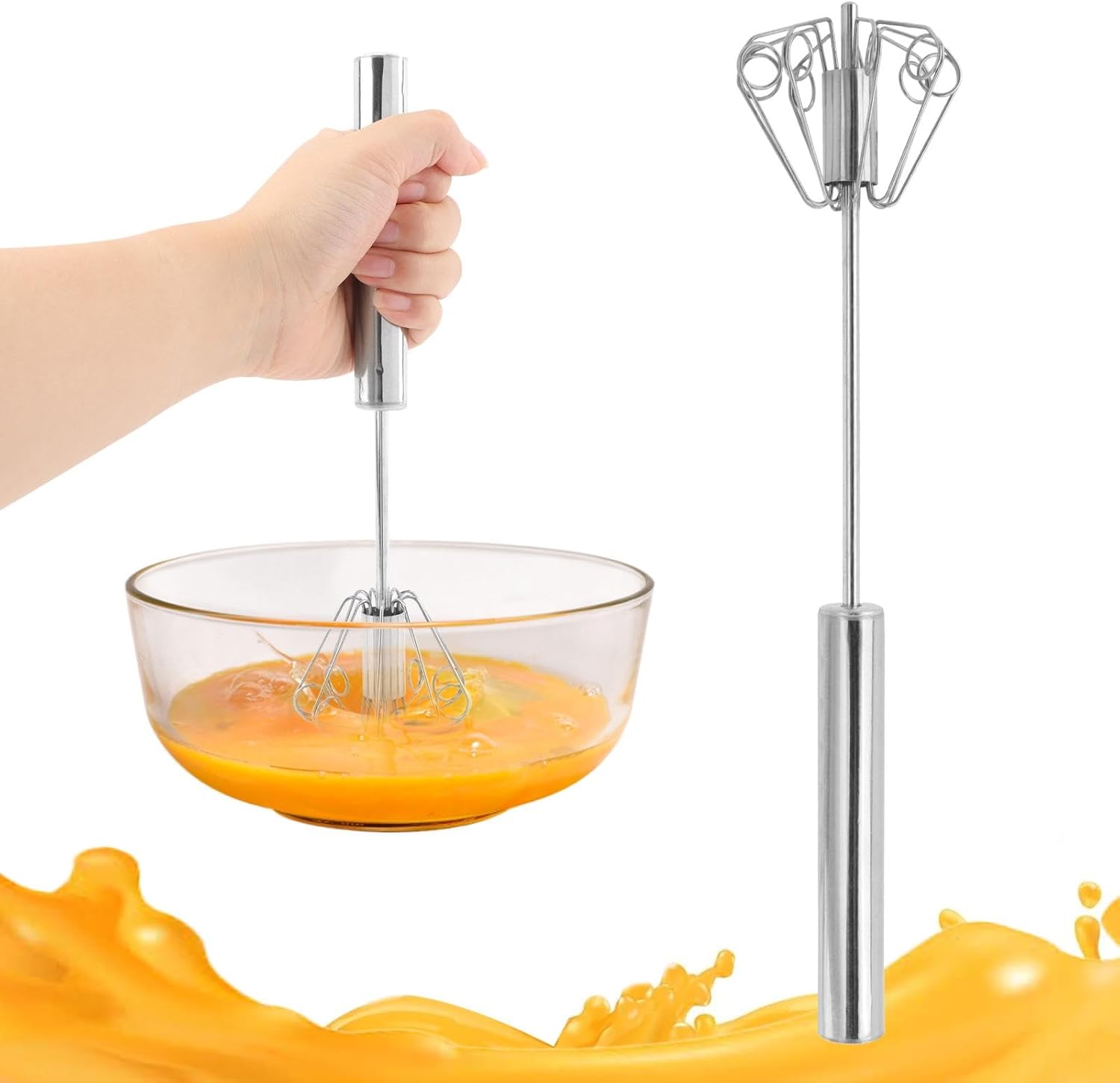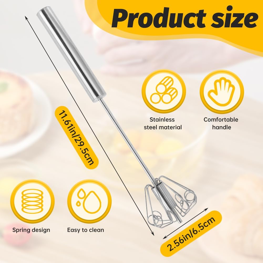- 【STAINLESS STEEL MATERIAL】The egg beaters are made of stainless steel, food-grade stainless steel, our push whisk is rust-resistant and built to last. The firmly riveted structure ensures durability and stability for long-term use,not crack like wooden kitchen tools, and not rust like other metal utensils.