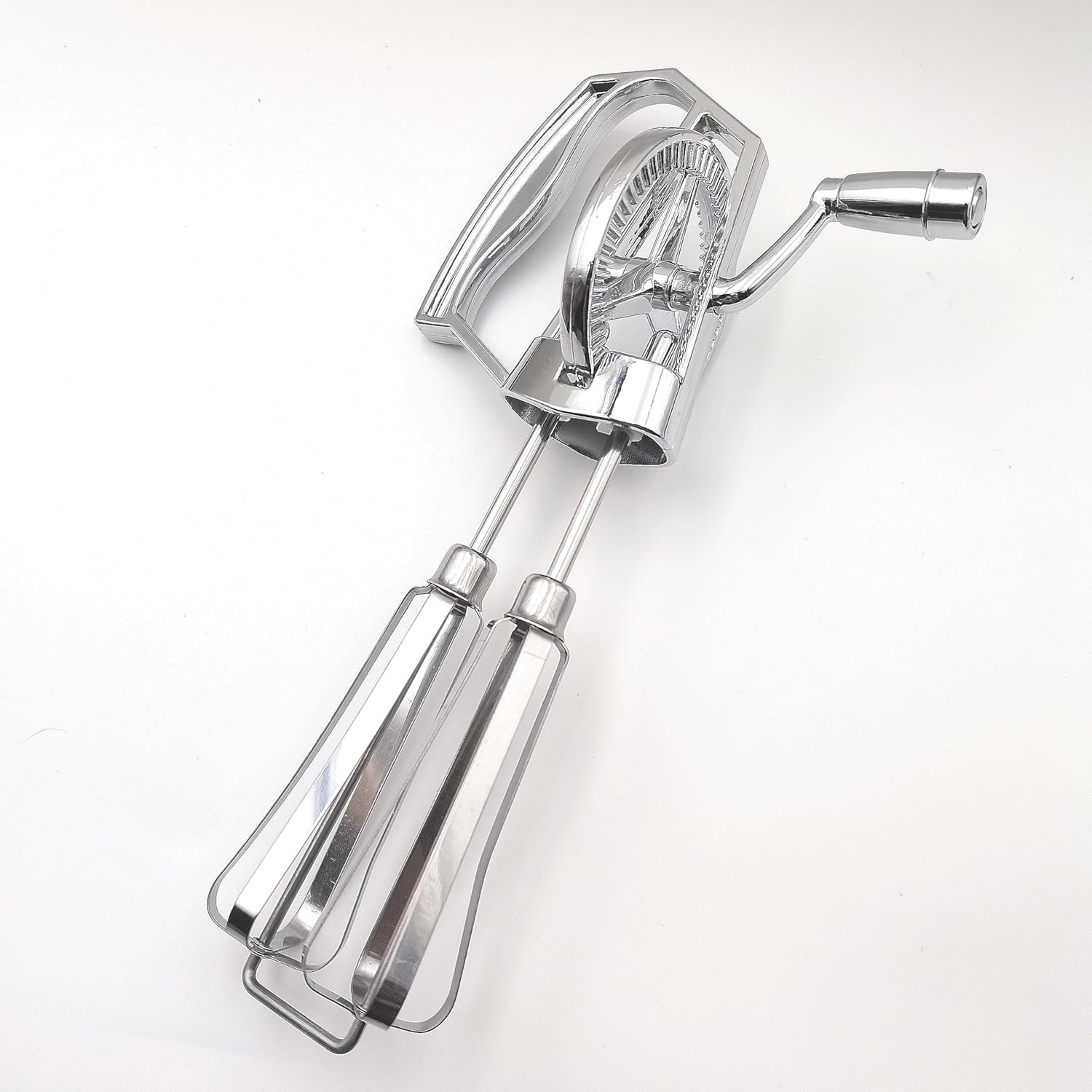 Manual Egg Beater Hand Crank Double Head Stainless Steel Whisk (1, Silver, Small)